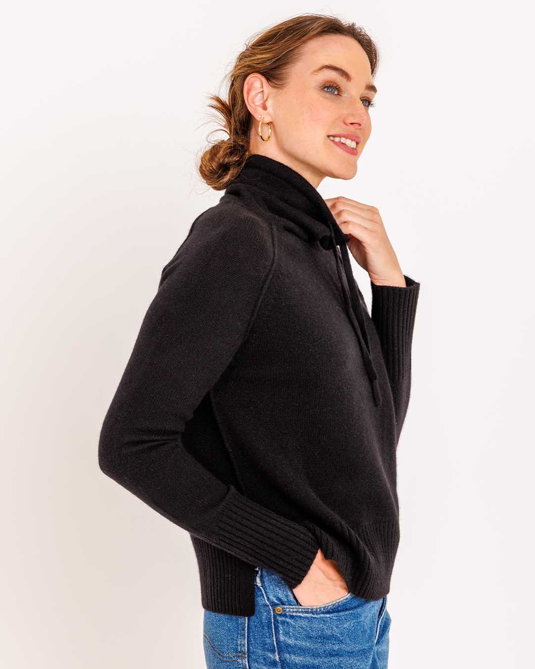 Discover relaxed athleisure with our Cashmere Drawstring Funnel. Featuring a drawstring funnel neck and sporty rib trims, this sweater offers a slightly boxy, relaxed fit perfect for casual days or cozy evenings. Crafted from 100% pure Cashmere, it marries comfort with classic charm.