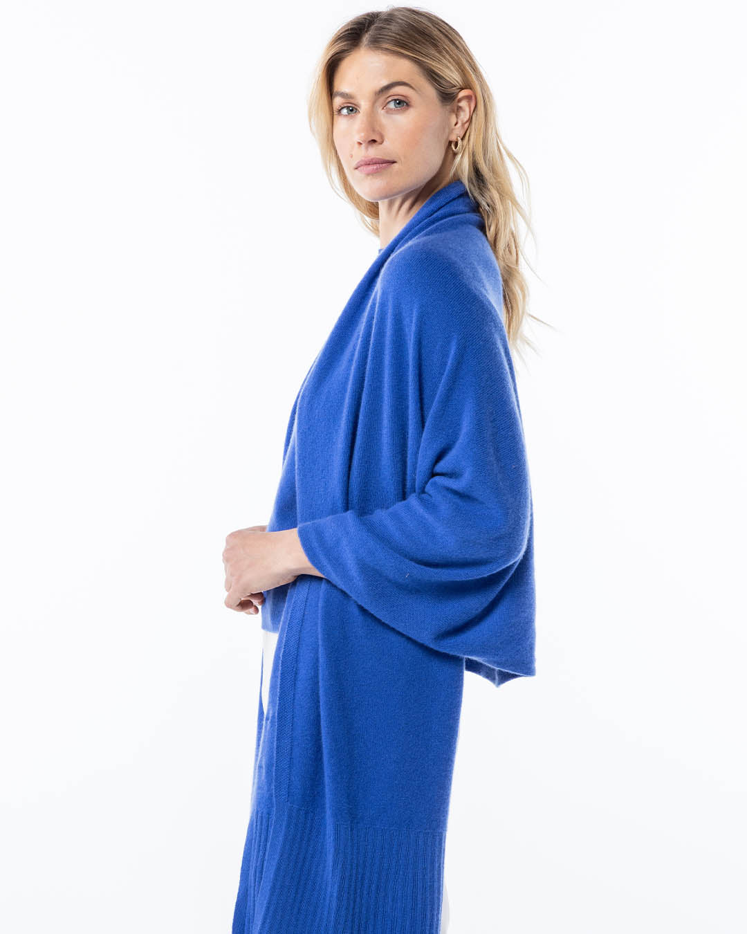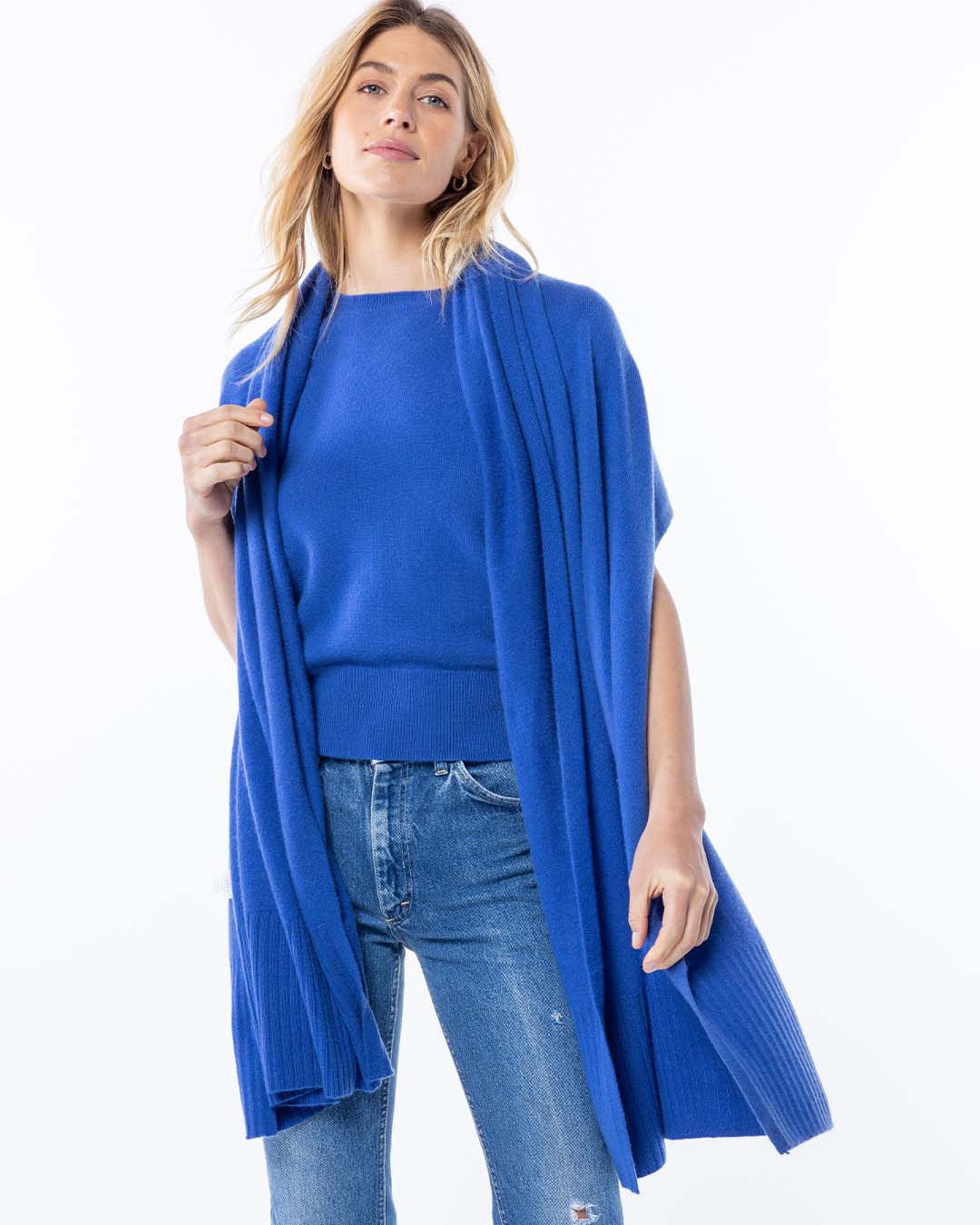 Embrace warmth and elegance with our 100% Cashmere Travel Wrap. Perfect for chilly evenings, its sleek vertical rib hem and generous dimensions provide both practicality and style. This wrap is an essential layering piece that effortlessly combines luxury with everyday wearability.