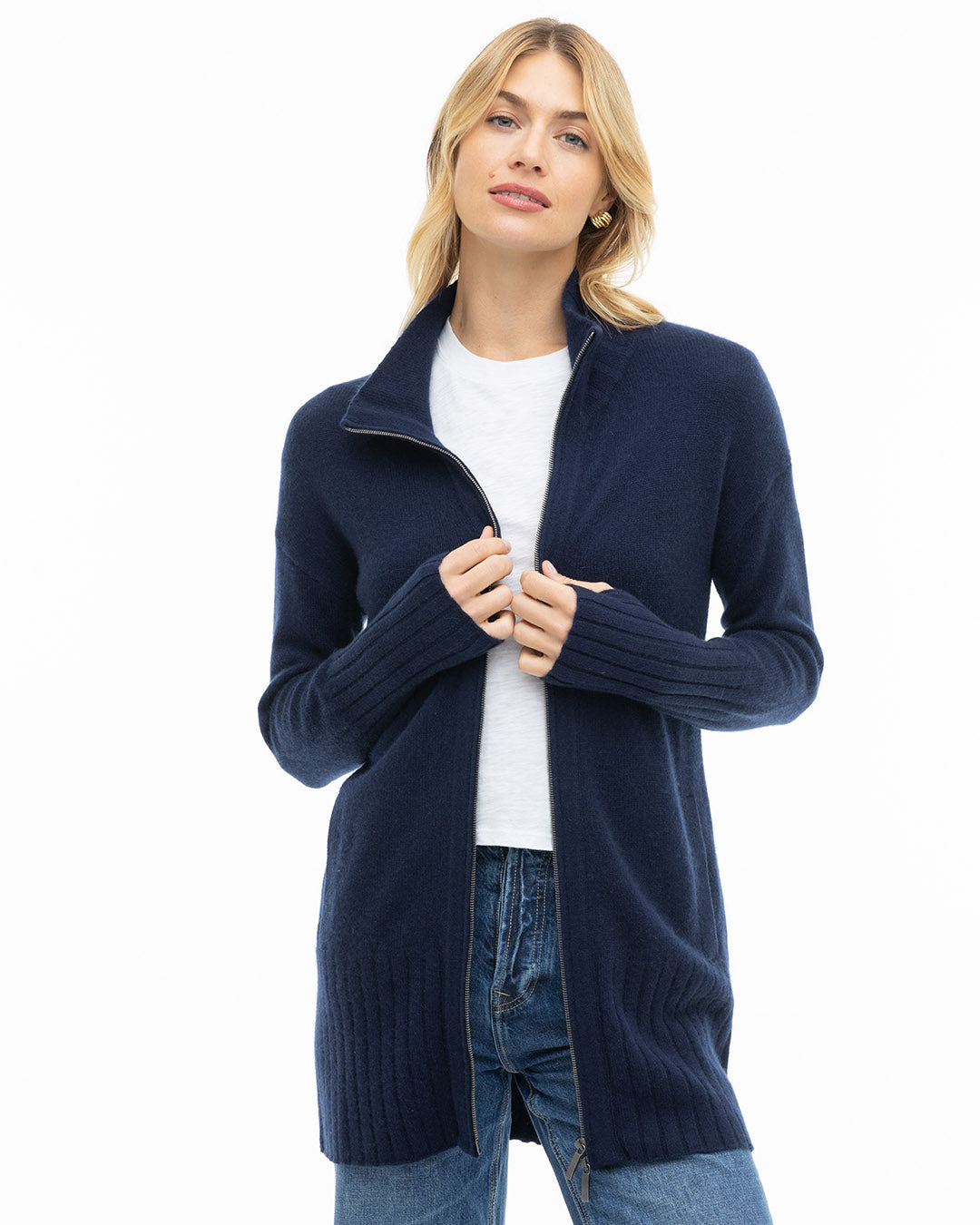 Cashmere Zip Up Cardigan