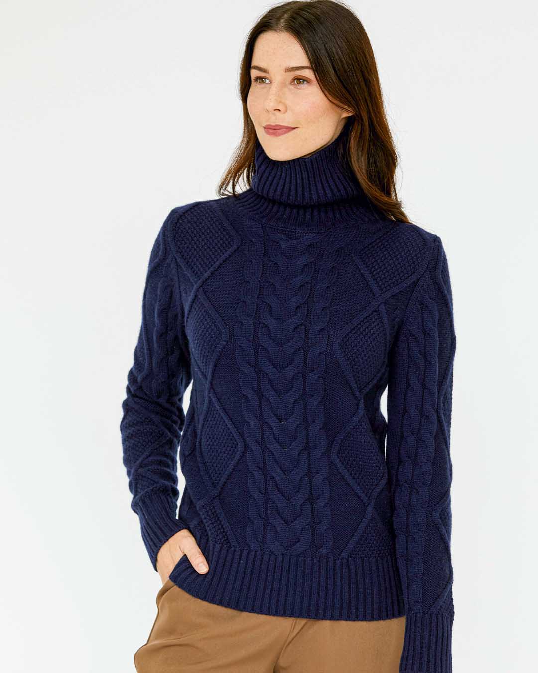 Discover the charm of our Classic Cable Knit Turtleneck Sweater. Made from a luxurious blend of Cashmere and Extra Fine Merino Wool, its rich cable pattern and updated ribbed turtleneck combine heritage warmth with contemporary style—perfect for colder days.