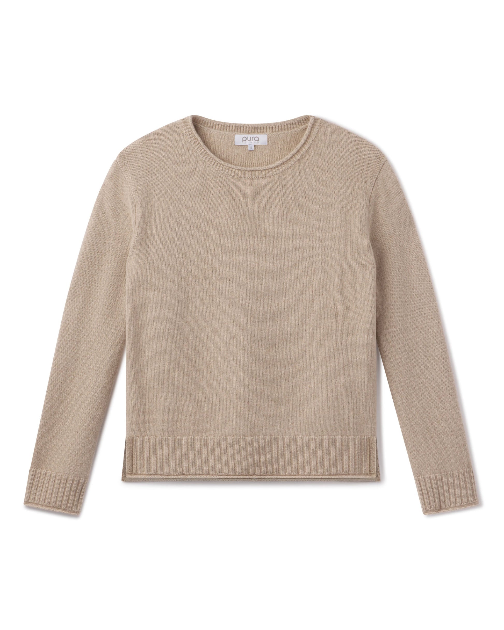 Meet your new favorite sweater—soft, sustainable, and designed for everyday wear. Crafted from 100% worsted spun cashmere, it offers the ultimate luxe feel designed to last years, complete with stylish rolled-edge trims and a perfect relaxed fit. Available in a range of gorgeous colors, it’s the ultimate go-to for effortless layering. Whether you're out and about or lounging at home, this is the sweater you’ll reach for again and again. Chic, comfy, and just a click away—make the Essential Cashmere Crew your new wardrobe essential