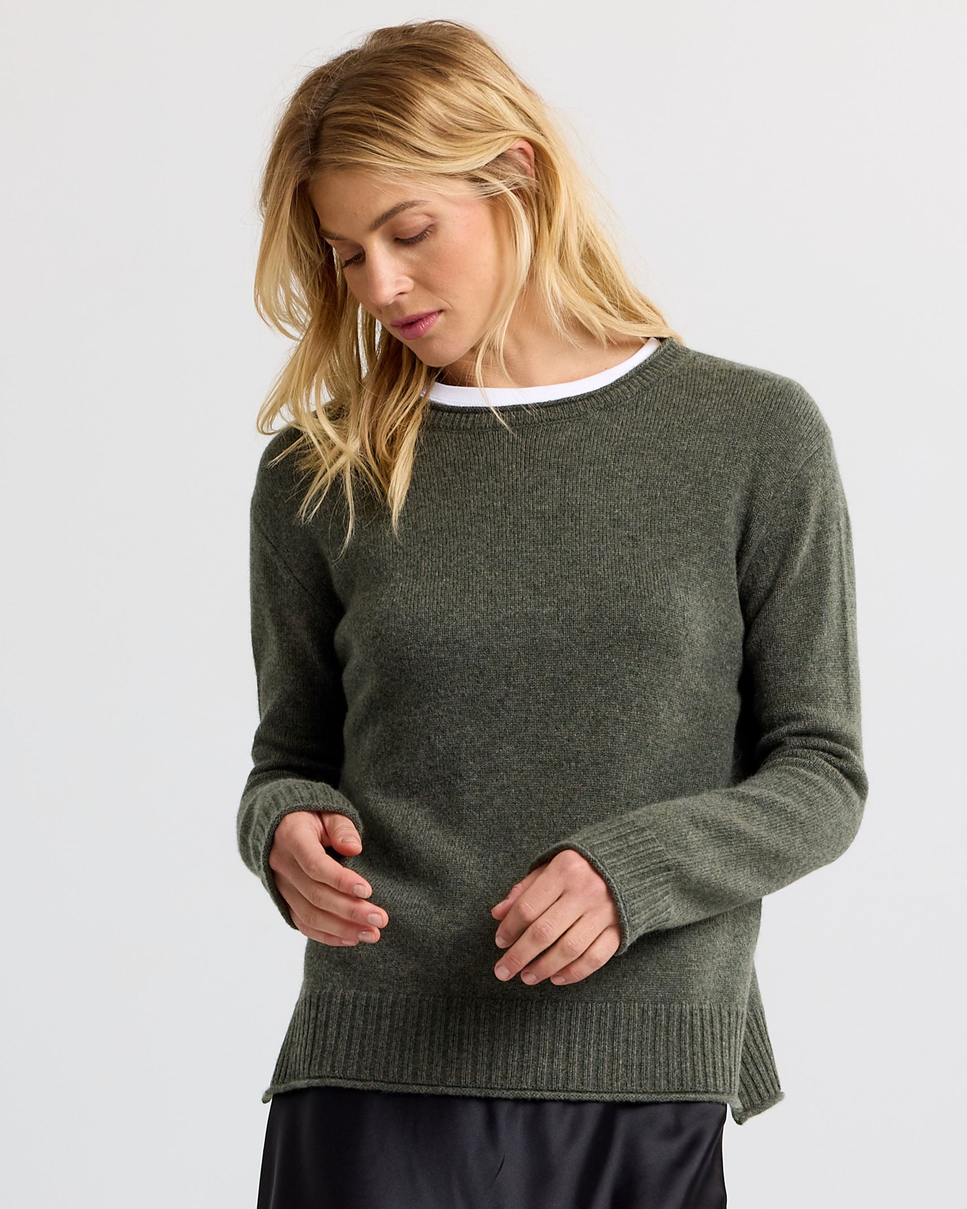 Meet your new favorite sweater—soft, sustainable, and designed for everyday wear. Crafted from 100% worsted spun cashmere, it offers the ultimate luxe feel designed to last years, complete with stylish rolled-edge trims and a perfect relaxed fit. Available in a range of gorgeous colors, it’s the ultimate go-to for effortless layering. Whether you're out and about or lounging at home, this is the sweater you’ll reach for again and again. Chic, comfy, and just a click away—make the Essential Cashmere Crew your new wardrobe essential