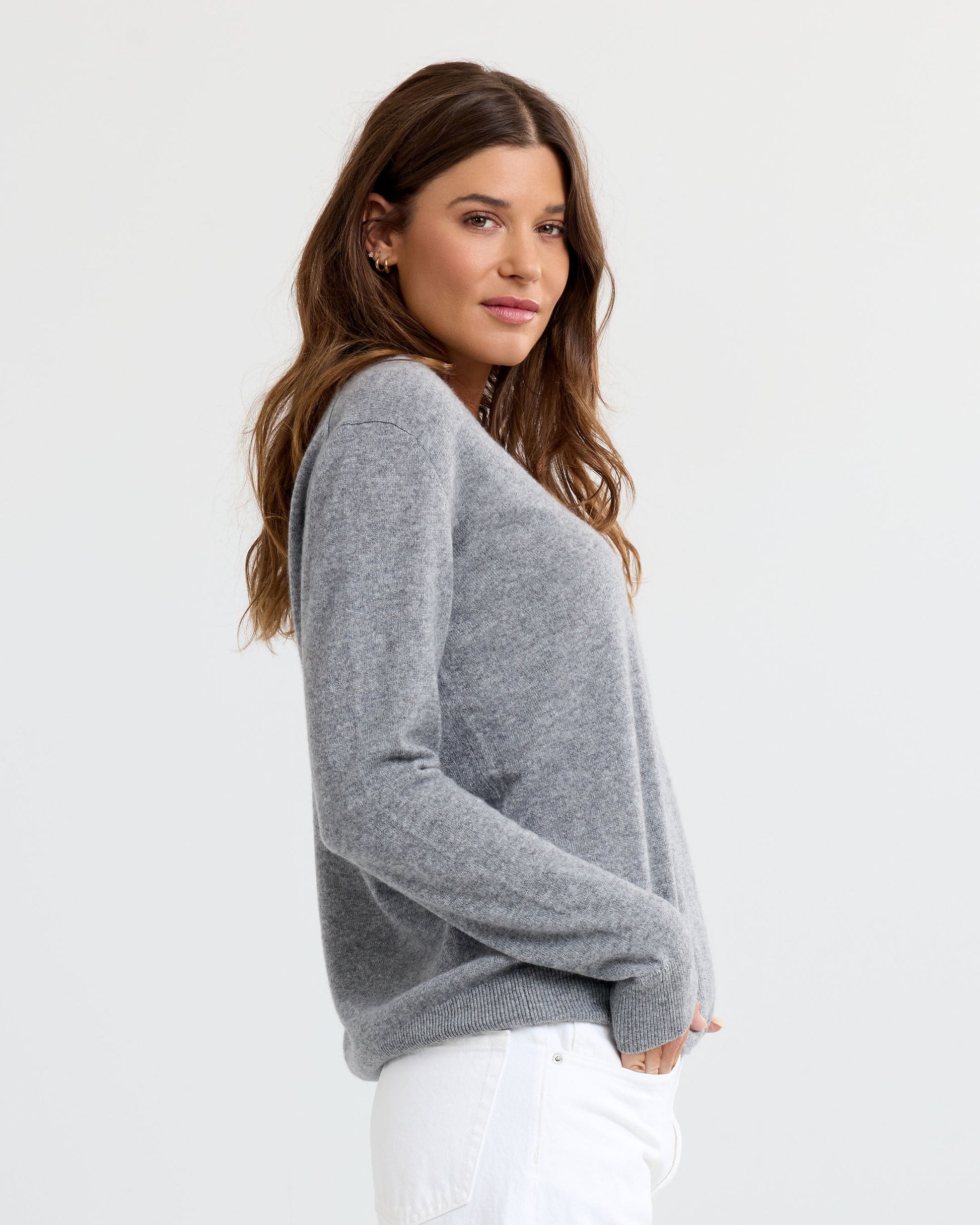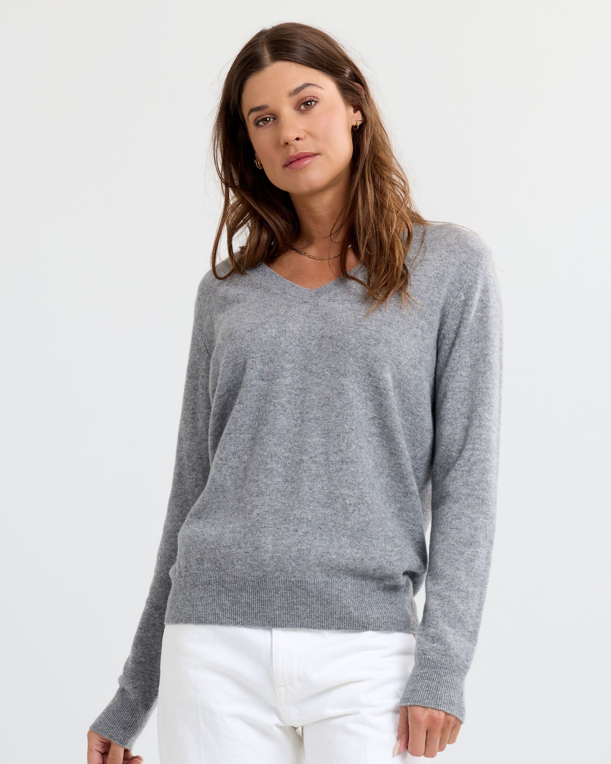 The Essential Cashmere V-Neck blends timeless style with effortless versatility. Made from 100% sustainably sourced cashmere, its flattering V-neckline and slightly elongated silhouette create a refined, easy-to-style fit. Whether paired with tailored trousers for a polished look or denim for casual elegance, this wardrobe essential transitions seamlessly from day to night.