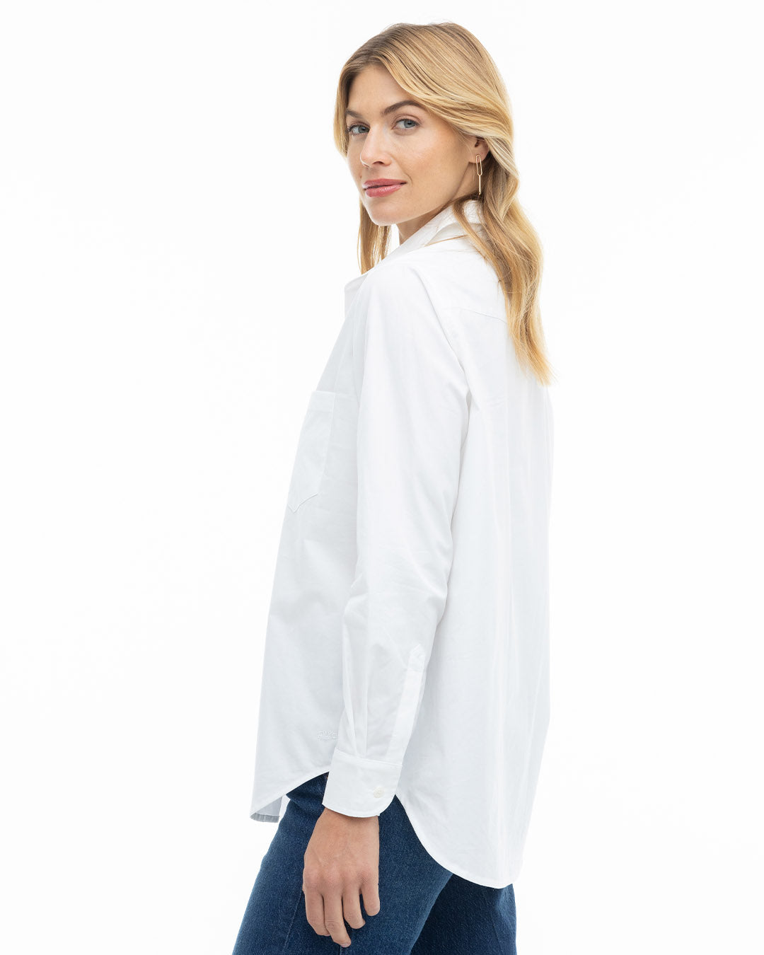 Crafted from crisp 100% cotton poplin, the Everyday Button Down offers a relaxed yet refined silhouette with tailored details at the shoulders and chest. A smooth placket, classic pocket, and flattering hem ensure effortless versatility, making it a go-to staple for polished, everyday wear.