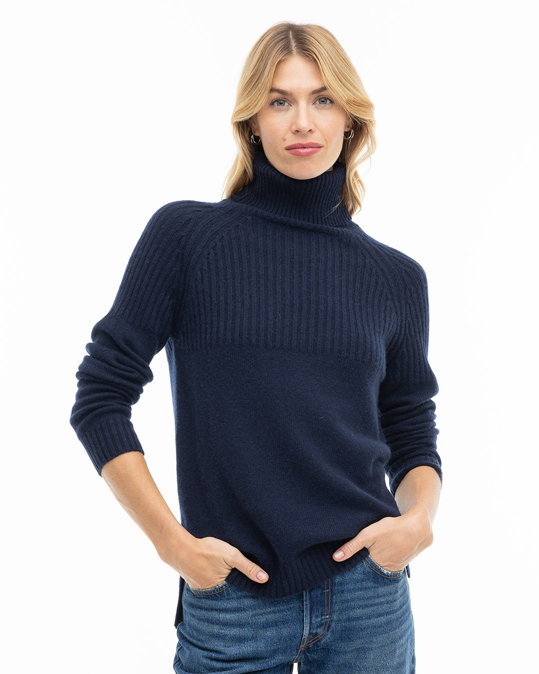 The sweater that started it all—our Half Ribbed Cashmere Turtleneck is the epitome of relaxed sophistication. Designed with a ribbed chest, raglan sleeves, and a generous turtleneck, it drapes beautifully for a timeless yet effortless look. A split hem adds movement, making it a versatile staple for any wardrobe.