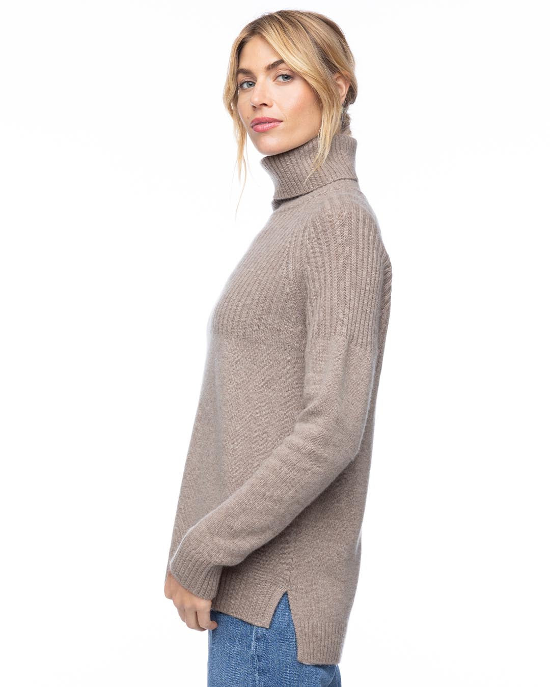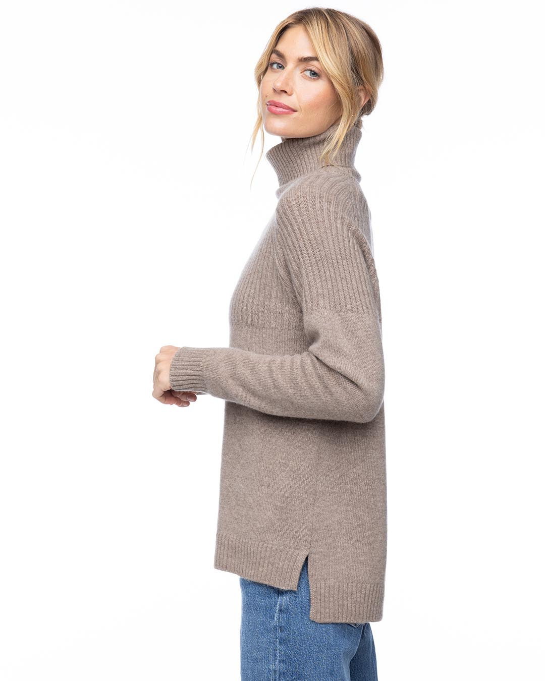 The sweater that started it all—our Half Ribbed Cashmere Turtleneck is the epitome of relaxed sophistication. Designed with a ribbed chest, raglan sleeves, and a generous turtleneck, it drapes beautifully for a timeless yet effortless look. A split hem adds movement, making it a versatile staple for any wardrobe.